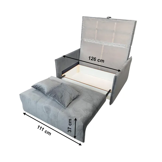 Pružinový rozkladací 2-sed s 2 vankúšmi. 2-sed je čalúnený poťahovou látkou príjemnou na dotyk. Látka sa volá Riviera 91 svetlosivej farby. Na 2-sede oceníte fakt, že disponuje aj praktickým úložným priestorom.