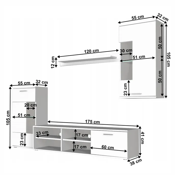 Rozmery obývačky sú šxvxh: 230x185x38 cm a materiál je fóliovaná DTD.