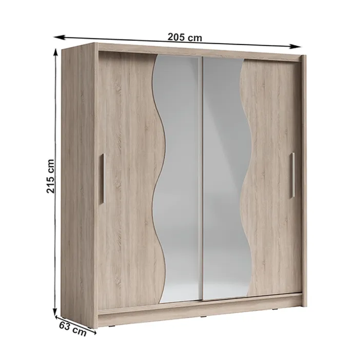 Šírka skrine je ideálna. Šírka skrine je 205 cm, výška 215 cm a hĺbka skrine dosahuje 63 cm.