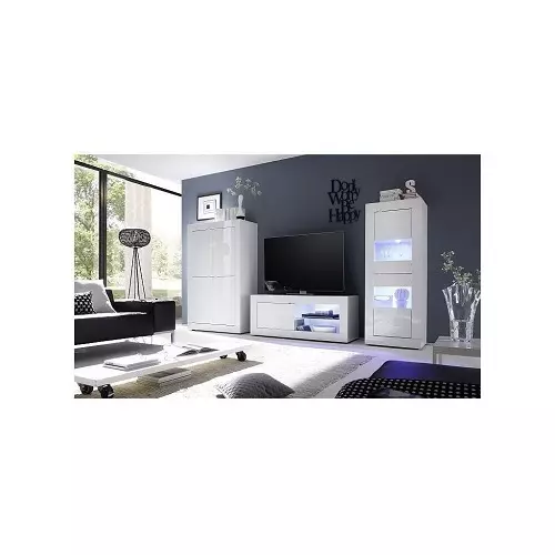 Moderná TV skrinka s 1 dvierkami a 1 poličkou z ponuky sektorovej obývacej steny Basic. Televízny stolík do obývačky je v ponuke v prevedení biely lak vysoký lesk